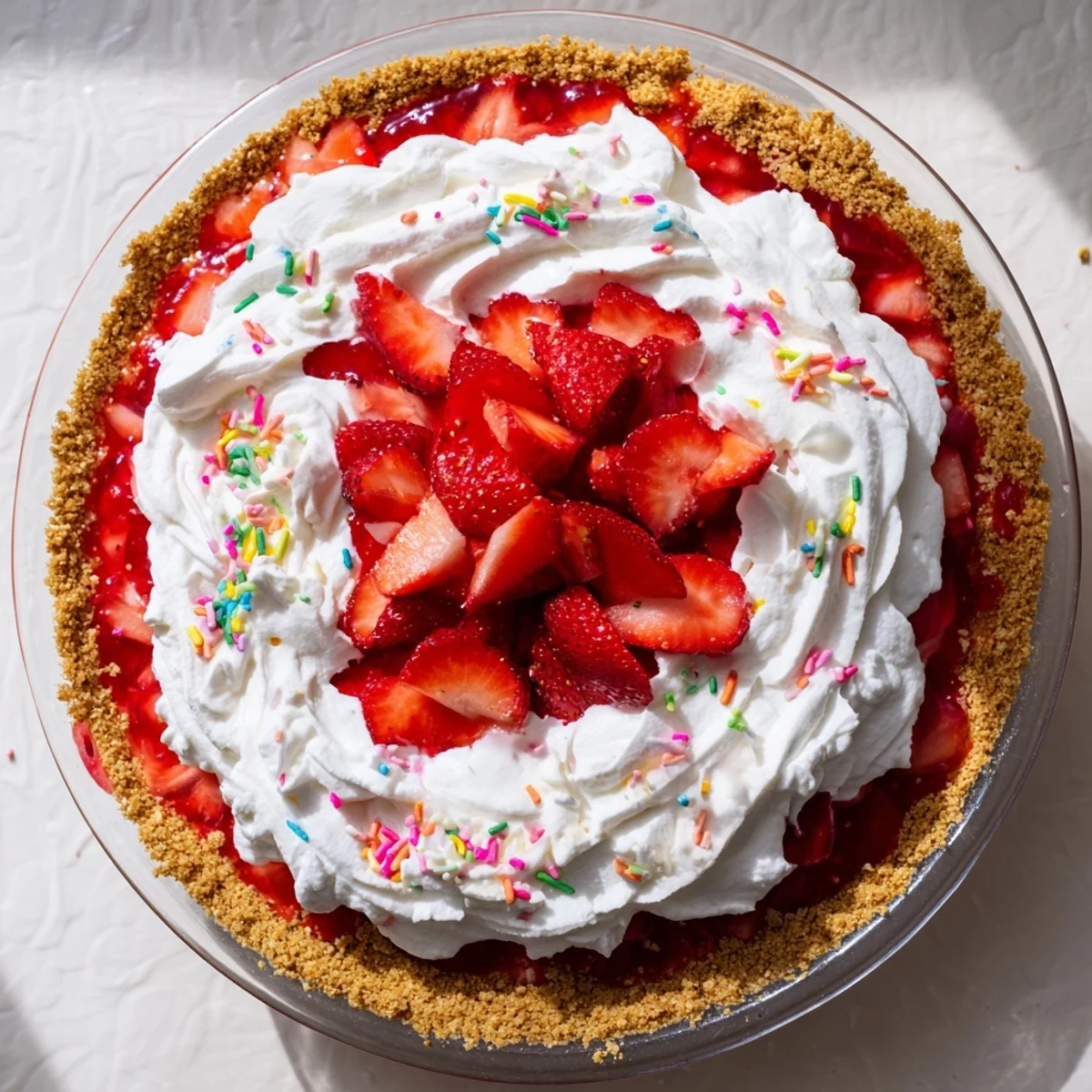 Perfect for holiday gatherings, this make-ahead dessert needs at least four hours to set, making it ideal for preparing the day before your celebration. Top with freshly whipped cream and additional strawberry slices for an impressive finish.
