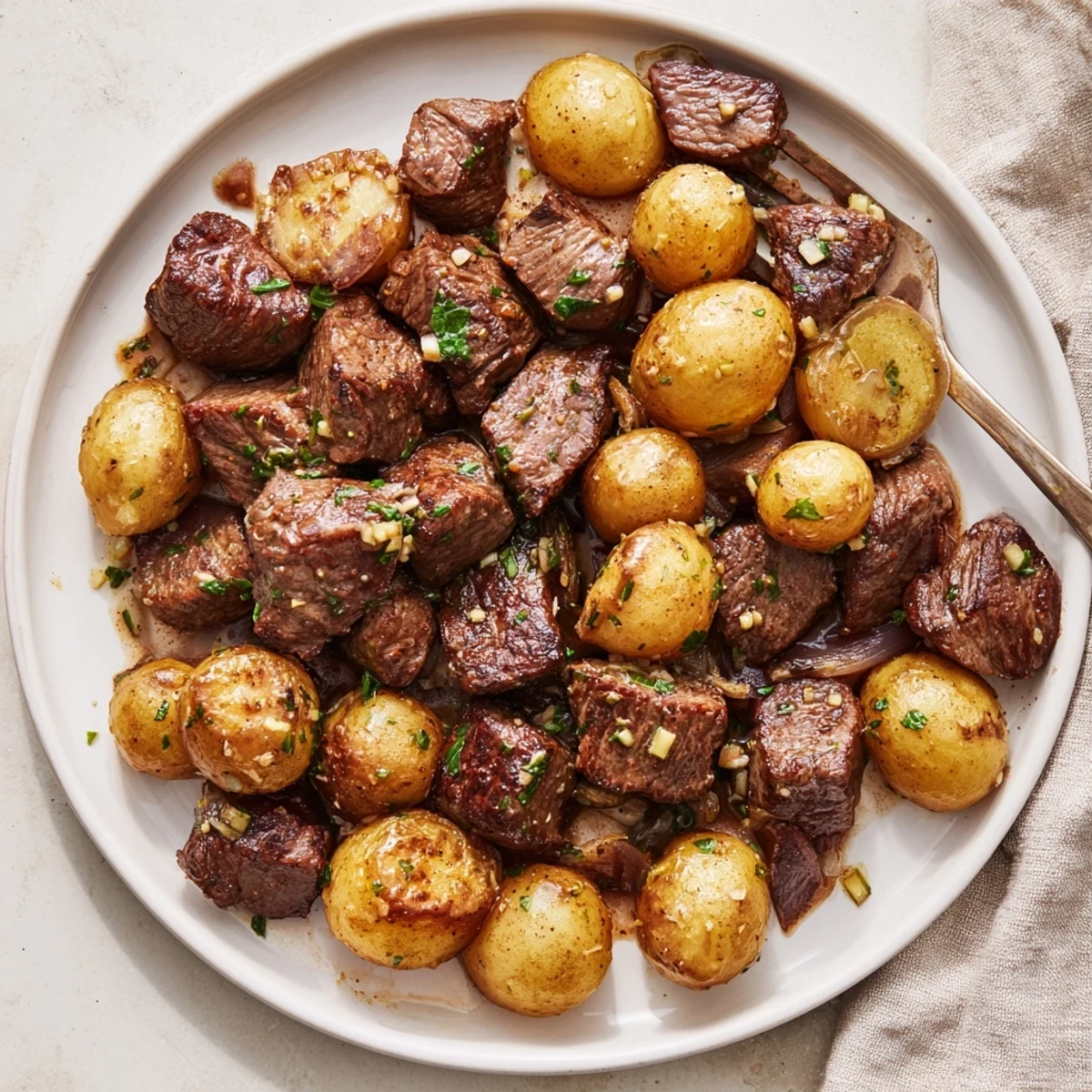 - Return potatoes and steak to the pan, tossing until everything shimmers in buttery garlic and the flavors fuse. Feel free to sneak a taste—chef’s perk.